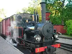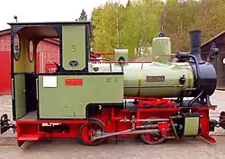 0-4-0 | 600 mm (1 ft 11+5⁄8 in) | 20 hp | Delivered via the Swedish general agent Carl Ström to the Hamra–Tumba Järnvägen of Gustaf de Laval on Gotland in Sweden. From 1916 owned by the construction company Byggnads AB, who sold it to the city of Stockholm in 1917 for work on Hammarbyleden.[4] |