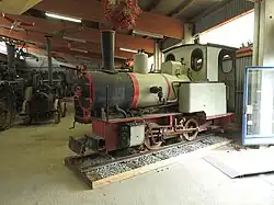 0-4-0 | 600 mm (1 ft 11+5⁄8 in) | 30 hp | Initially P. Dinndorf, Strasbourg, now agricultural museum in Eschach-Seifertshofen, Germany |