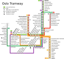 This is a list of current stations of the Oslo Tramway, Norway.[1][2][3][4][5][6][7][8][9][10][11][12]