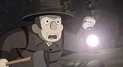 - The Beast (voiced by Samuel Ramey)[8] is almost always depicted in the form of a silhouette. He is well-spoken and manipulative, and has the power to possess other creatures. He has a humanoid shape and a pair of antlers. His eyes glow a faded white colour, yet can have red pupils and yellow-light blue sclera. The Beast forces the Woodsman to carry and fuel his Dark Lantern, which contains the Beast's soul, under the guise that it contains the soul of the Woodsman's daughter. Throughout the miniseries, the Beast follows Wirt and Greg, trying to turn them into Edelwood trees to fuel his lantern.[3] When the light of the lantern is shined upon the Beast in the final episode of the miniseries, he is revealed to be composed of various grotesque faces, likely from the souls of those he has turned into Edelwood trees. The Beast is killed when the Woodsman extinguishes the flame within the lantern.