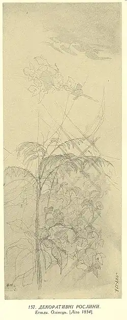 - ^ 74. Лопухи та інші начерки. Тарас Шевченко. Повне зібрання творів в десяти томах. Живопис, графіка 1857-1861. Vol. 10. Kyiv: Видавництво Академії Наук УРСР. 1963.