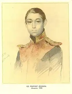 Portrait of Battle Painter Alexander Yevstafiyevich Kozebu[44] | Paper, Watercolor | 27.9 × 22.5 | 1843 |