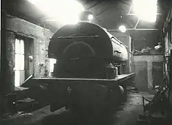 It was retired in 1967 and presented to the Locomotive Club of Great Britain (LCGB) by its former owners Messrs Colvilles Ltd of Mossend. In August 1971 it moved from storage at the Scottish Railway Preservation Society at Falkirk to the Sittingbourne and Kemsley Light Railway (SKLR) to whom ownership was transferred in 1996.[24] In 2023, after years of deterioration from being stored in the open air, the SKLR trustees transferred ownership to the Quainton Railway Society. It arrived at the Buckinghamshire Railway Centre in March 2024. The aim is to return the engine to service after restoration.[23] It is the oldest surviving standard-gauge Peckett. | |||