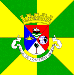 Square yellow and green gyronny charged with the arms of Lourenço Marques.