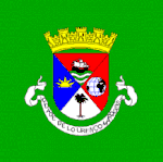 Rectangular white field quartered by a green cross, the minor coat of arms of Portugal on the top-right canton.
