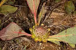 | Microgeantae | western ground protea | Protea acaulos | Common ground sugarbush | ![]() |