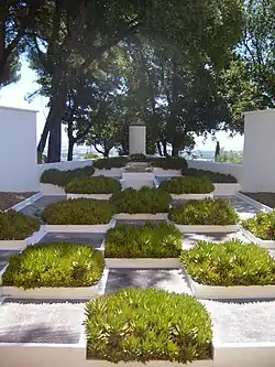 - Parc Saint-Bernard of the Villa Noailles in Hyères : 'The Parc Saint-Bernard was created by the vicomte de Noailles, a 20th-century art patron, next to his summer house, the Villa Noailles, (1923–1926), which was one of the first modernist houses in France. The villa features a small triangular modern garden by Guevrekian. The main garden, now a public park, is a series of tree-shaded terraces and paths overlooking the Mediterranean, devoted to the native plants of the Mediterranean, both common and rare, including a garden of rosemary and other aromatic plants.