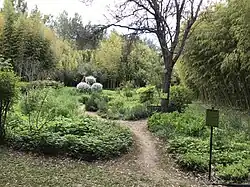 A contemporary botanical garden with five themes; an ethnobotanic garden, with historical plants useful to mankind; the Garden of Charlemagne, with plants which the Emperor Charlemagne decreed be planted at every monastery in the Empire, as well as plants imported from the Americas (corn, tomatoes, potatoes); The garden of acclimatization, with new, unusual and forgotten kinds of plants; the garden of scents, with wide variety of aromatic plants, and a tunnel of roses, jasmine and clematis; and an aquatic garden, with both local aquatic plants and exotic water plants, such as water lilies, lotus and papyrus of the Nile.
