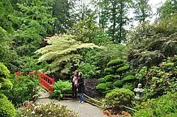 A romantic English garden and botanical garden, created in 1965. It includes basins, cascades and a water staircase; Italian terraces; and a fine collection of magnolias, camellias, rhododendrons, and plants of Australia, New Zealand and the Mediterranean.(see photos)