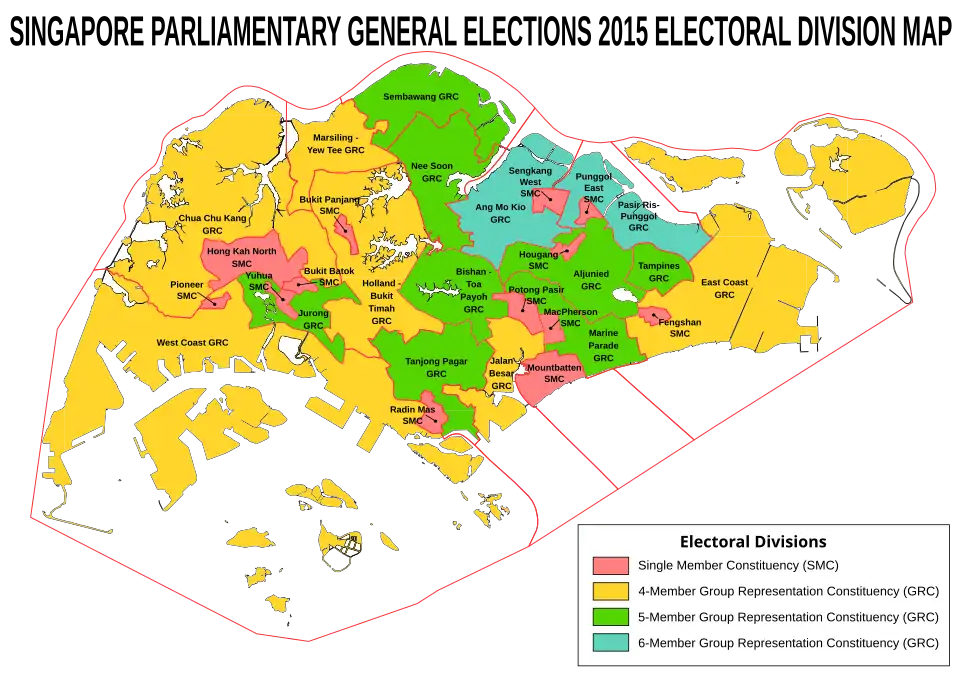 | Tanjong Pagar Group Representation Constituency | 5 | Indian or other | 130,597 | 47 | Buona Vista |