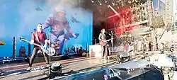 In 2007, Quinn was briefly replaced by Graham Hopkins (ex-Therapy?) after the drummer broke his arm.[8] Guitar tech Troy Stewart also played additional guitars from 2008 to 2013. In 2008, the band were re-joined by Colburn, who played percussion and keyboards from 2008 to 2009.[9] On the band's reworked tour in 2009, they were joined by Ruth O’Reilly on French horn and Stella Page on violin,[10] they were also briefly re-joined by Archer after Connolly suffered nerve damage.[3]