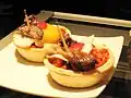 Everywhere. Quite famous in Basque Country | appetizer | a small slice of bread upon which an ingredient or mixture of ingredients is put and held there using a stick. The common ingredients are fish such as hake, cod, anchovy, and baby eels; tortilla de patatas; stuffed peppers; and croquettes. |