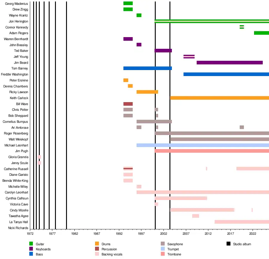 | Cornelius Bumpus | 1993–2003 (died 2004) | tenor saxophone |