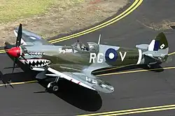- Spitfire Mk.VIIIc MV154 (VH-A58). It is based at Archerfield in Brisbane, Queensland. Painted in the colors of A58-484, the personal mount of Australia's highest scoring pilot Clive Caldwell. Built at Supermarine Southampton in 1944, it was delivered by famous ATA pilot Mary Wilkens to 6 Maintenance Unit before it was shipped to Australia for the RAAF as A58-671. It never saw service and remained in storage until 1994, when it was rebuilt to fly with the UK civil register G-BKMI and wears the markings of Spitfire Mk.VIII MT928, a Spitfire which served with No. 154 Squadron. It was later sold to Meier Motors in Germany and subsequently re-registered as D-FEUR. The aircraft suffered a prop strike in 2019 during the Battle of Britain Airshow at Duxford in September.[3] The aircraft was repaired by the Aircraft Restoration Company (ARCo), re-registered as G-BKMI and was flown in the UK. in early 2024 it was sold to Archerfield, making her return to Australia in October 18, 2024[4][5]