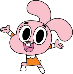 Anais Errrrrr Watterson, a pink rabbit, is Gumball's precocious 4-year-old[13] sister. She is one grade above her brothers and is often shown telling Gumball what to do. She often impatiently tags along with him as a voice of reason, but has also been shown manipulating her family to get what she wants. She sometimes exhibits childlike behavior and is shown as socially inept and incapable of forming friendships as she drives potential friends away with over-the-top clinginess. In "The Gumball Chronicles: Ancestor Act", it's revealed that her middle name is "Errrrrr", due to Richard not having enough time to pick a middle name.