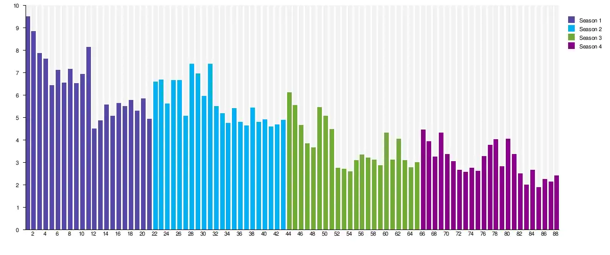 | 4 | 23 | October 7, 2012 | May 19, 2013 | 129[13] | 3.05[13] | |
