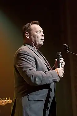 The Comic Relief single in 1993, "Stick It Out", was performed by Right Said Fred with the help of a group of entertainment personalities on backing vocals. The single featured Alan Freeman, Basil Brush, Bernard Cribbins, Clive Anderson, Hugh Laurie, Jools Holland, Linda Robson, Pauline Quirke, Peter Cook and Steve Coogan. It peaked at number four on 20 March 1993 (week ending).
