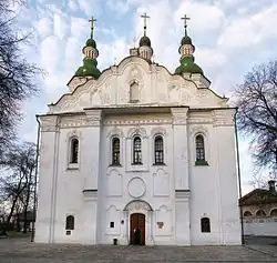 | St. Nicholas Cathedral | Nizhyn | 1655–1658 | Large cruciform nine-part five-dome church. Much of the exterior decoration has been reconstructed hypothetically. It iconostasis was made in the 1730s and destroyed in the Soviet period.[9] This church is the prototype of Ukrainian Baroque cruciform five-dome churches. | |