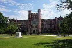 1929 | OU's central library, it holds over 4.2 million volumes. In 2001 the building was listed as a National Historic Landmark for its role in the segregation case McLaurin v. Oklahoma State Regents for Higher Education. | [1] |