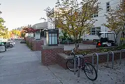 Gerlinger Annex houses the department of dance. It was named for Irene Hazard Gerlinger, first woman regent and fundraising donor.[n 34] Part of Women's Memorial Quadrangle |
