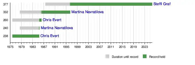 Steffi Graf spent 377 weeks at the top of the WTA ranking, the most of any female player.