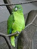 | Blue-cheeked amazon or Dufresne's amazon (Amazona dufresniana) |  | 34 cm (13.5 in) long, mostly green, blue cheeks. | French Guiana, Guyana, Suriname, Venezuela, possibly in northern Brazil[48][49] |