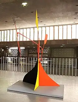- ^ In this image, on the far side of the balcony is one of Valera's murals (right) and an unknown sculpture (left). Part of Calder's Ráfaga de nieve is seen on the far left.