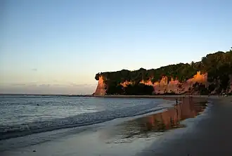 The Rio Grande do Norte coast is 410 kilometres (250 mi) long and is located on the northeasternmost tip of the South American continent.[2] In the state are located dozens of beaches, from virgin to urban ones, and famous for its dunes and cliffs.[3]