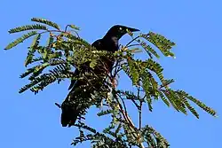 The icterids are a group of small to medium-sized, often colorful, passerine birds restricted to the New World and include the grackles, New World blackbirds, and New World orioles. Most species have black as the predominant plumage color, often enlivened by yellow, orange, or red.