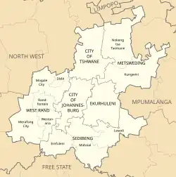 This is a list of common names of birds occurring in Gauteng, South Africa. Gauteng includes both the cities of Johannesburg and Pretoria, and numerous satellite municipalities spreading over a total of some 18,000 square km and an enormous diversity of habitat, and ranging in elevation from 1300 to 1900 metres. Gauteng lies at the junction of three major biomes – grassland to the south, arid savannah to the north-west, and moist savannah to the north-east and east – this location largely accounts for its great diversity of species.
