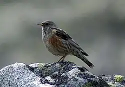 The accentors are in the only bird family, Prunellidae, which is completely endemic to the Palearctic. They are small, fairly drab species superficially similar to sparrows.