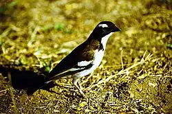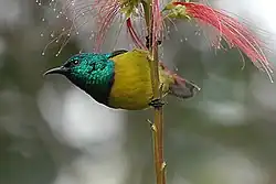 The indigobirds are finch-like species which usually have black or indigo predominating in their plumage. All are brood parasites, which lay their eggs in the nests of estrildid finches.