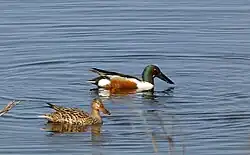 Anatidae includes the ducks and most duck-like waterfowl, such as geese and swans. These birds are adapted to an aquatic existence with webbed feet, flattened bills, and feathers that are excellent at shedding water due to an oily coating.