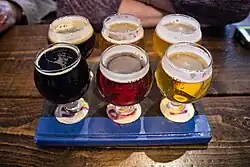 Blacksmith Brewing Company, in Stevensville, opened in 2008 by Eric Hayes.[52] The building was a blacksmith shop and continues the theme, such as flights on anvil-shaped platters.[53]