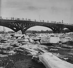 77 m (253 ft) | Beam bridge Wooden strut framed bridge, masonry piers |