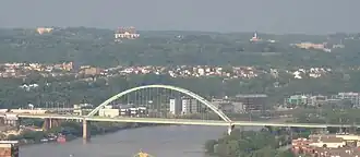 A 2006 study[2] determined that, at the time, Pittsburgh had 446 bridges, though that number has been disputed.[3] With its proximity to three major rivers and countless hills and ravines, Pittsburgh is known as "The City of Bridges".[4]