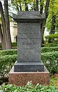 Military officer, Major General, friend of Alexander Pushkin. Originally buried in the Vyborg Roman Catholic cemetery, transferred to the Tikhvin in 1936. Monument is not the original.