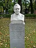 The organisers were faced with the problem that despite designating the cemetery to be the artists' necropolis, historically the Tikhvin had primarily been the burial ground of statesmen, military leaders, scientists, and composers.[4] There were relatively few graves of writers, who had tended to prefer the Smolensky Cemetery; or artists, who had traditionally chosen the Nikolskoe or Novodevichy Cemetery.[4] This necessitated the transfer of a large number of burials and monuments, which took place in two main periods, from 1936 to 1941 and from 1948 to 1952.[4] There were also several burials of prominent Soviet citizens, as the cemetery gained the status of an urban pantheon.[2] Those buried here included the scientist Sergey Lebedev in 1934, artist Mikhail Avilov in 1954, and actor Nikolay Cherkasov in 1966. In 1972 the remains of the composer Alexander Glazunov were transferred from Paris.[2] In 1968 Fyodor Dostoevsky's wife Anna Dostoevskaya was reburied next to her husband, while theatre director Georgy Tovstonogov was interred in the cemetery in 1989. So far Tovstonogov's has been the last burial to take place in the cemetery.[2][4]
