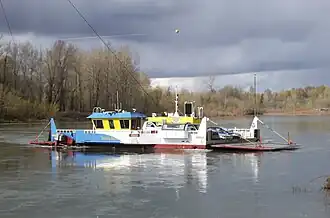 • Oseček ferry, Elbe river, formerly secured by overhead cable, now without it