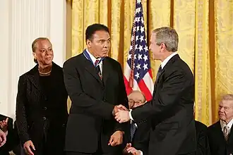 - ^ "Boxing great Muhammad Ali looks at his award during a ceremony..." Getty Images. 2009-08-10. Retrieved 2025-03-13.