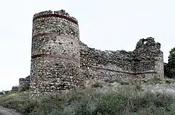 Ustra is a castle in the eastern Rhodope Mountains in southern Bulgaria. Its ruins lie 4 km (2+1⁄2 mi) southwest of the village of Ustren situated on a hill at approximately 800 m (2,600 ft) above sea level. The fortress was built in the 10th century AD to protect an important trade route. It was taken by the armies of Simeon the Great (r. 893-927), but after his death, it was among the lands given back to Byzantium in return for recognition of the imperial title of the Bulgarian rulers. Between the 12th and 14th centuries, it frequently changed hands between the two empires, but the Byzantines held it most of the time. | ![]() |