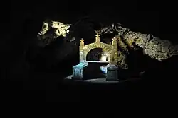 The cave is 2,3 km long (4 km with small side canals) and has an underground river flowing through | ||