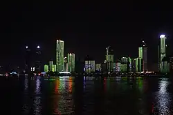 Dubai has the most skyscrapers of any city in the Middle East, and the tallest building in the world, the Burj KhalifaGuangzhou is part of the Pearl River Delta alongside Hong Kong and Shenzhen; the urban agglomeration has over 1,000 skyscrapersKuala Lumpur has the most skyscrapers of any national capital and any city in Southeast AsiaFrom the 1920s to the 1990s, Chicago had the second-most skyscrapers in the worldChengdu has the most skyscrapers of any city without a supertall skyscraperMumbai has the most skyscrapers in South Asia by a wide marginMelbourne has the most skyscrapers in Oceania, and is the southernmost city with over 30 skyscrapersDespite being China's capital and second-largest city, Beijing ranks 13th in mainland China for number of skyscrapersPanama City has the most skyscrapers of any city in Central America and all of Latin AmericaIstanbul has skyscrapers on both sides of the Bosporus, making it the only city to have skyscrapers on two continents, Asia and EuropeMoscow, the northernmost city with over 30 skyscrapers, has the most skyscrapers fully within EuropeMakati, with 55 skyscrapers, makes up less than half of the total number of skyscrapers in Metro ManilaHefei is one of 16 cities in China with at least 50 skyscrapersOsaka has the second most skyscrapers in JapanBefore Brexit, London had the most skyscrapers in the European UnionHouston has the most skyscrapers in the U.S. state of TexasMalaysia is the least populous country to have three cities with at least 30 skyscrapers. Shown above is Johor BahruThe resort city of Balneário Camboriú is the only city in South America with at least 30 skyscrapersLos Angeles has the most skyscrapers in the U.S. state of California