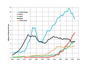 This is a list of countries by oil imports based on The World Factbook and other sources.[1] Many countries also export oil, and some export more oil than they import.