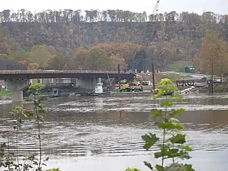Herr's Island Railroad Bridge (West Penn Bridge) (rails removed, crosses back channel only)