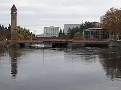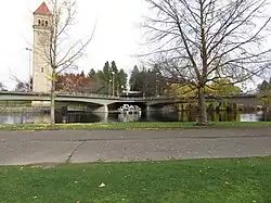 Replaced 1908 bridge.[1] Passes through Riverfront Park
