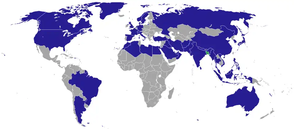 Other countries have accredited missions to Bangladesh by being resident in neighboring nations.