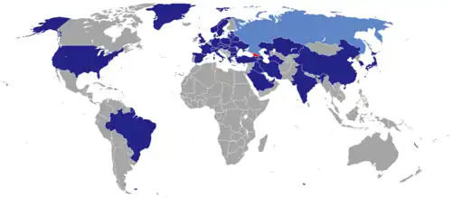 - ^ a b c d e f g h i j k l m n o p q r s t u v w x y z aa ab ac ad ae af ag ah ai aj ak al am an ao ap aq ar as at au av aw ax ay az ba bb bc bd be bf bg bh bi bj bk bl bm bn bo bp bq br bs bt bu bv bw bx by bz ca cb cc cd ce cf cg ch ci cj ck cl cm cn co cp cq cr cs ct cu cv cw cx cy cz da db dc dd de df dg dh di dj dk dl dm dn do dp dq dr ds dt du dv dw dx dy dz ea eb ec ed ee ef eg eh "Diplomatic List" (PDF). Ministry of Foreign Affairs of Georgia. April 2025. Retrieved 29 July 2025.