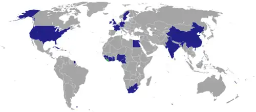 Japan[a][57] (Closed temporarily in 1990 during the First Liberian Civil War, and had never been reopened until formally abolished in 2004[58])