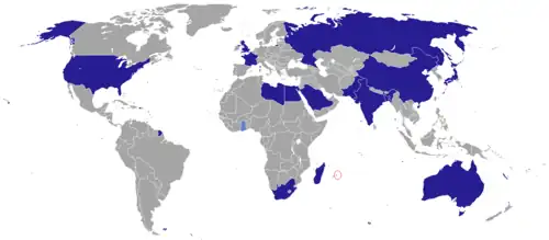 - ^ a b c d e f g h i j k l m n o p q r s t u v w x y z aa ab ac ad ae af ag ah ai aj ak al am an ao ap aq ar as at au av aw ax ay az ba bb bc bd be bf bg bh bi bj bk bl bm bn bo bp bq br bs bt bu bv bw bx by bz ca cb cc cd "Foreign Diplomatic Missions Accredited to Mauritius (Non-resident)". Ministry of Foreign Affairs, Regional Integration and International Trade of Mauritius. Retrieved 13 December 2024.